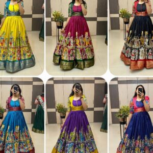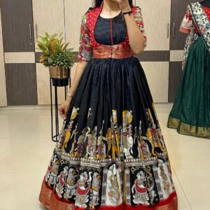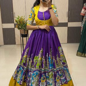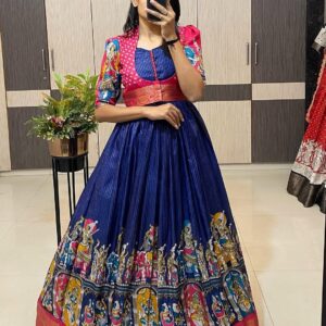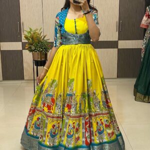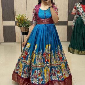Kalamkari dola silk Gown with coatt quantity